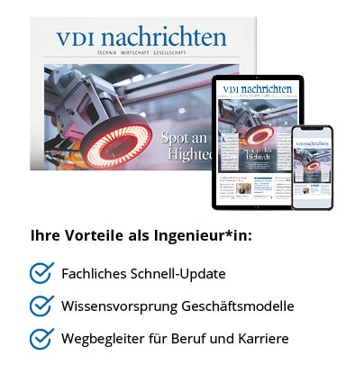 Für eine Bestellung mit Print-Belieferung außerhalb Deutschlands wenden Sie sich bitte an unseren Leserservice:Für VDI nachrichten unter Telefon +49 6123 9238-201 oder per E-Mail